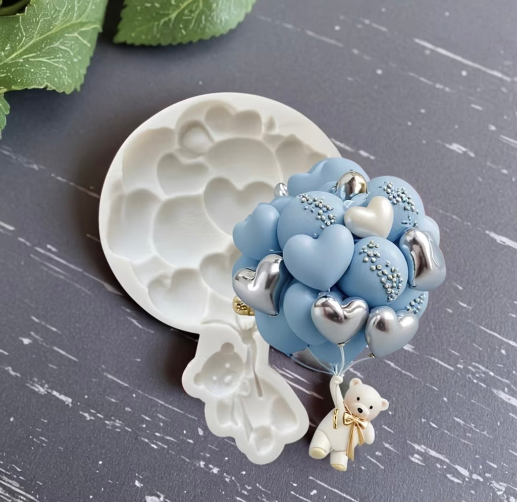 Teddy Bear Heart Balloon Bunch