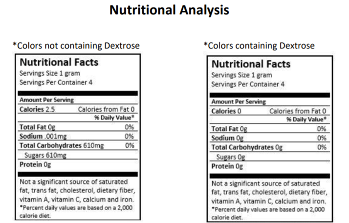 FDA Compliance & Restrictions: All ingredients in Shine Dessert Glitter have been approved by the FDA based on usage levels. To learn more about the FDA approved usage levels and the approved ingredients list from the FDA read “Substances Added to Food” at FDA.GOV & “FDA Approved Usage Levels” Article 73.350 and more. EUROPEAN UNION Complies with food standards and purity criteria pursuant Commission Regulation (EC) Nos. 1881/2006, 1333/2008, 231/2012